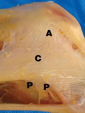 Szerokie pasmo (A) przytwierdza się do ścięgna mięśnia czworogłowego, rzepki i ścięgna rzepki. Szeroka zbita część centralna (C) przytwierdza się do guzka Gerdy’ego i głębokiej powięzi nogi, a cienka, ale wytrzymała część rozciąga się z tyłu (P), mocując mięsień dwugłowy uda i ścięgno, głowę kości strzałkowej i głęboką powięź uda. Te punkty przyczepu współpracują ze sobą podczas zginania i prostowania, by zapewnić kompleksową stabilizację bocznej części kolana.